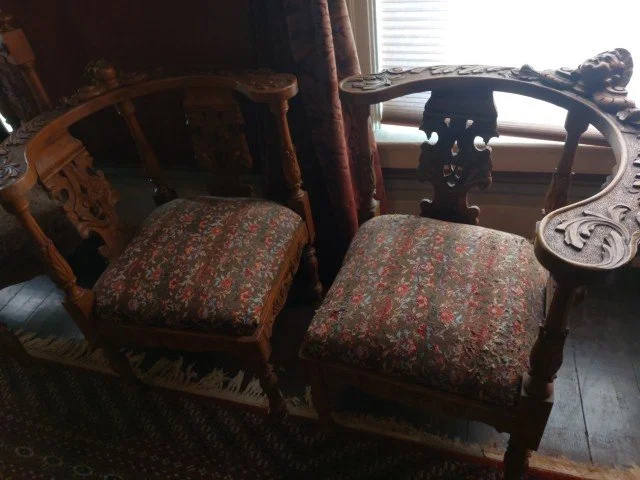 lots of small medium and large Victorian side chairs, some projects including a pair of red velvet parlor chairs