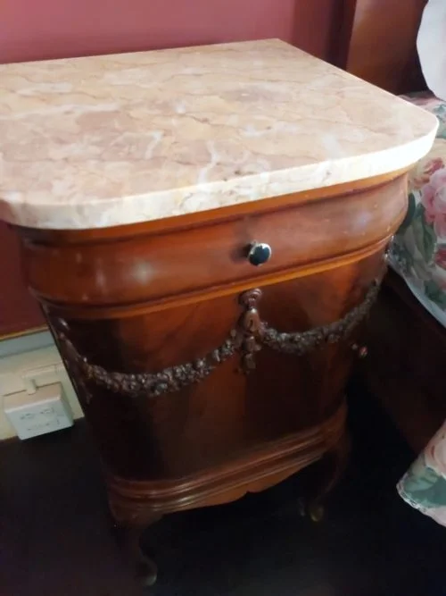 Walnut and marble table 25.5"W, 19"L, 29"H (damaged marble)