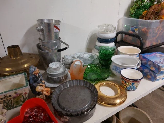 daily use kitchenware, utensils, service items, cookware, small appliances, flatware, candles - coffee cups, teacups - walking canes, umbrellas,