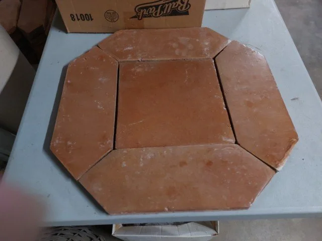 handsome terra cotta “Pickett Fence” style floor tiles (appr 200 sq ft)