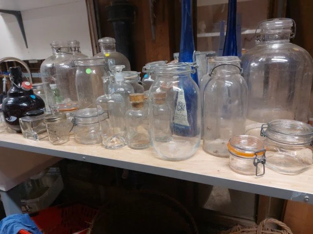 small med large vintage clear glass jugs and containers with wire-bail closure lids
