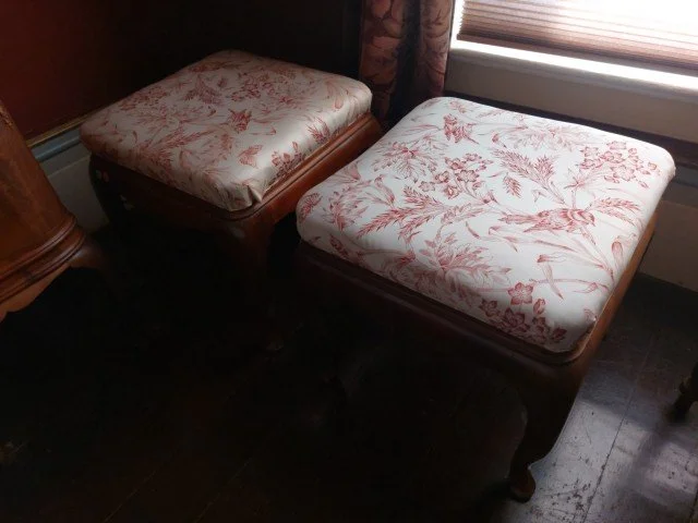 Low seat 19"W, 19"D, 18.5"H (2), Set-Dressing table 21"D, 79.5"H, 49"W w/ stool