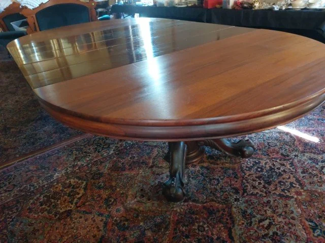 large Walnut Dining Room Claw Foot Table 60" x 60" closed and 60" x 133" opened with leaves