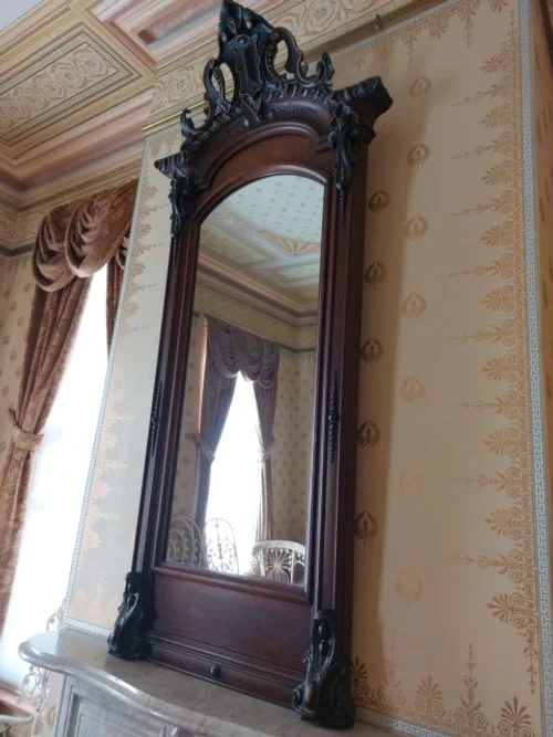 Victorian tall library mirror / walnut frame 10'H, 34"W